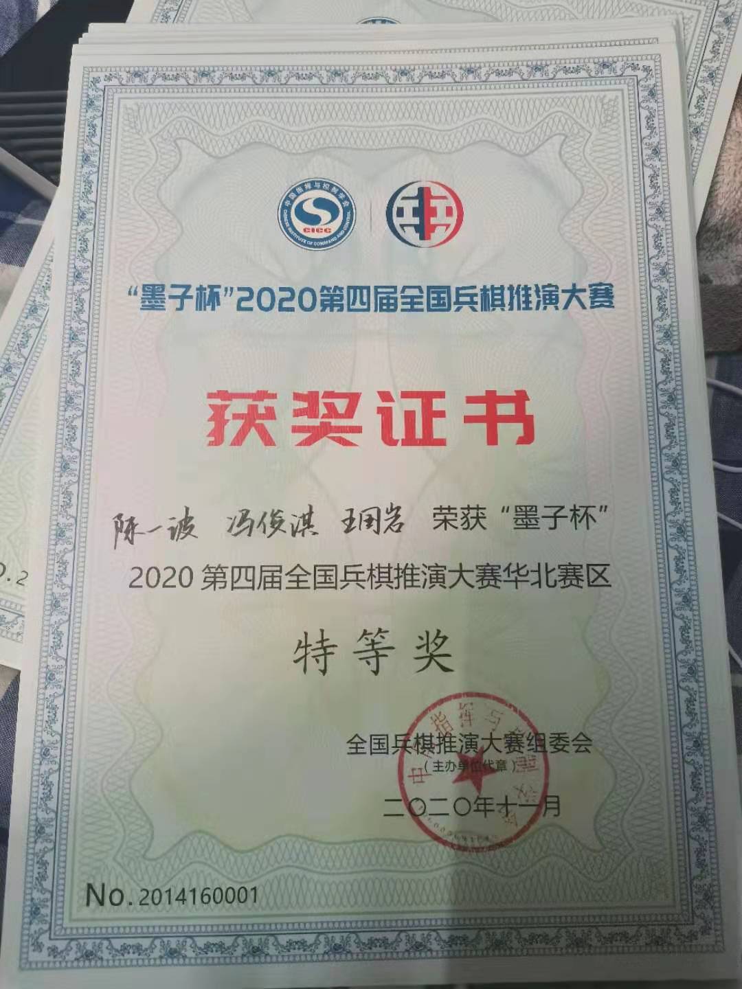 为激发青年大学生爱国尚武精神,为国防和军队现代化建设提供强大人才和智力支持,服务创新型国家建设,2020年11月28日-29日,“墨子杯”2020第四届全国兵棋推演大赛华北赛区决赛在我校成功举办。