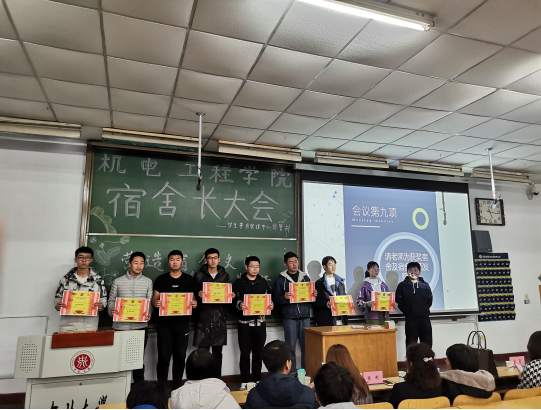 学生事务管理中心宿管部学生代表从宿舍安全注意事项、卫生环境以及楼层管理和特殊时期传染病和新冠防控知识等进行宣讲;随后,3048和2020这两个榜样宿舍进行了宿舍风采展示,他们从如何保持宿舍良好卫生环境、宿舍成员相处模式、学习文化氛围等方面与大家分享经验,同学们收获颇多。接下来,郭宇朋同学带领的集体宣誓显示了宿舍长们对于做好宿舍管理工作的信心和决心。之后,辅导员段志薇、段雪倩、凌霄、刘凯琼老师分别为榜样宿舍,优秀宿舍长,学风优秀宿舍,卫生优秀宿舍颁奖。