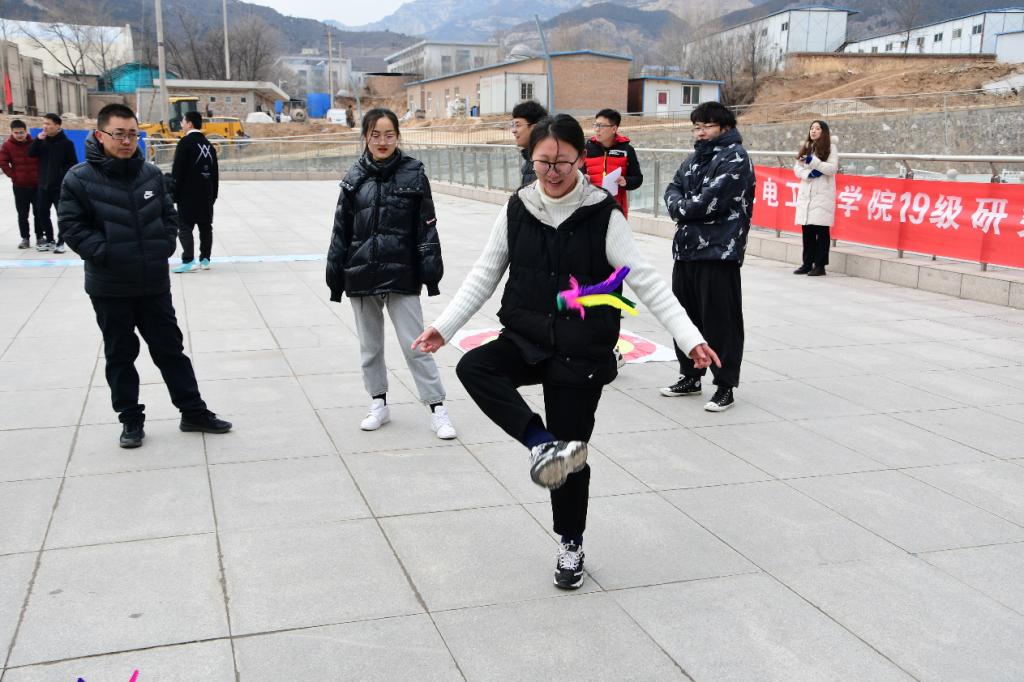 于2020年12月8日在科学楼C座广场举办2019级研究生趣味运动会。本次运动会设有项目:掷沙包、手忙脚乱、踢毽子、转呼啦圈,每个项目均设有一、二、三等奖。运动会以小组为单位,共有12支参赛队伍。