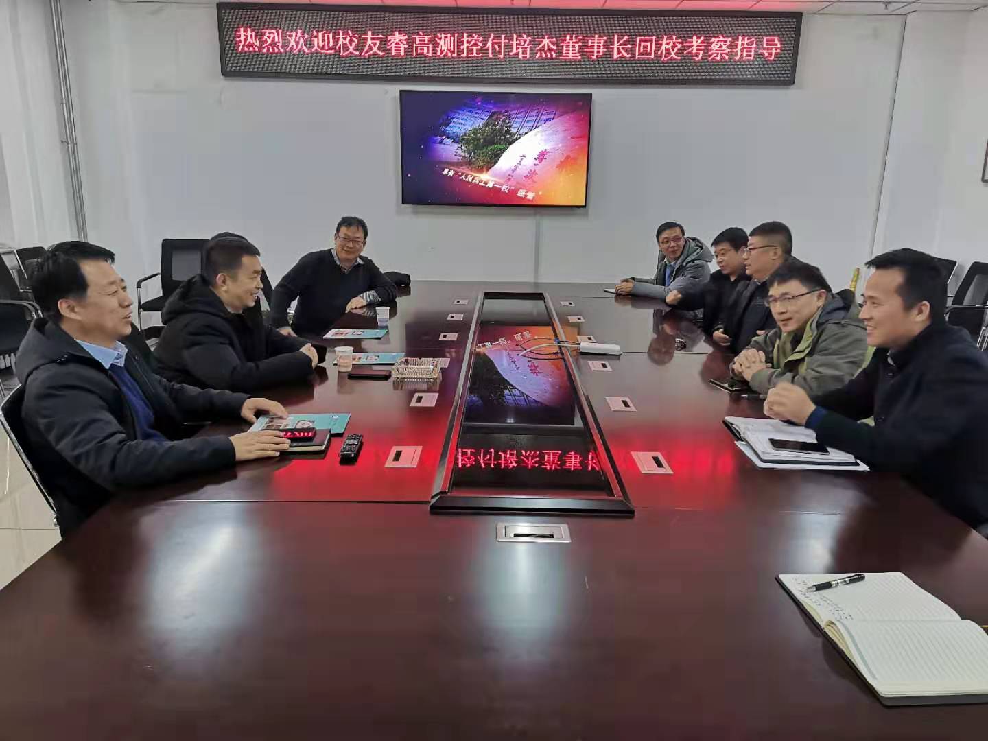 介绍片,罗建国书记对两位校友的到来表示了热烈的欢迎,简要介绍了学院近年来的发展情况,付董事长高度赞扬学校、学院取得的成绩,介绍了西安睿高测控的技术服务面向,赵河明副院长详细介绍了可开展合作的部分学院科研项目,随后大家进行了交流。