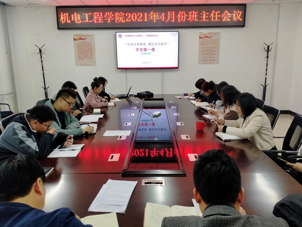 随后,刘书记提出,一、安全教育,1、安全工作14点注意事项;2、继续做好学生心理健康状况摸排工作,全面落实好心理异常学生的帮扶工作;3、严格履行请销假手续,给学生强调事后请假一律不批。二、思想政治教育,1、通过主题班会,组织开展“学党史·强信念”系列活动来加强党史学习教育;2、深入推进“三全育人”综合改革;3、各班级严格按照学院要求时间节点进行2020级德育开题答辩工作。三、学风建设,1、班主任定期跟班听课;2、继续做好学生课堂礼仪教育;3、所有的补考成绩已经出来,各位班主任了解学生挂科情况。四、日常教育管理工作,1、大三、大四班主任严把在外住宿的标准,大一大二原则上不允许在外住宿;2、做好档案记录工作,并在每个月班主任例会时将相关表格统一交给王姣老师;3、定期宿舍走访或检查;4、按照相关要求做好主题班会工作;5、定期召开班会。五、近期工作1、班主任做好参与各项校园文化活动学生的审核、督促和关心工作;2、各班主任继续做好助学贷款催收的配合工作;3、对于留降级学生和退学的学生,清楚学生的具体情况,并及时与家长联系,做好联系记录;4、做好毕业生工作;①关注补考未过,不能按时毕业的学生,做好心理疏导和政策解读;②读研学生的调档和政审工作;③就业,签协议;④毕业生思想动态,关注就业和毕业困难学生;⑤毕业设计。
