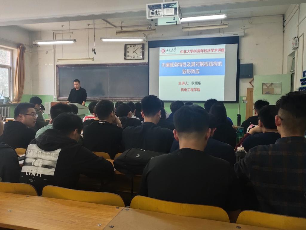 李旭东老师为同学们作了一场题为《内爆载荷特性及其对钢板结构的毁伤效应》的讲座。