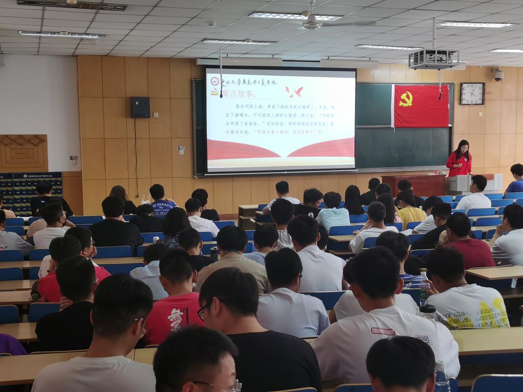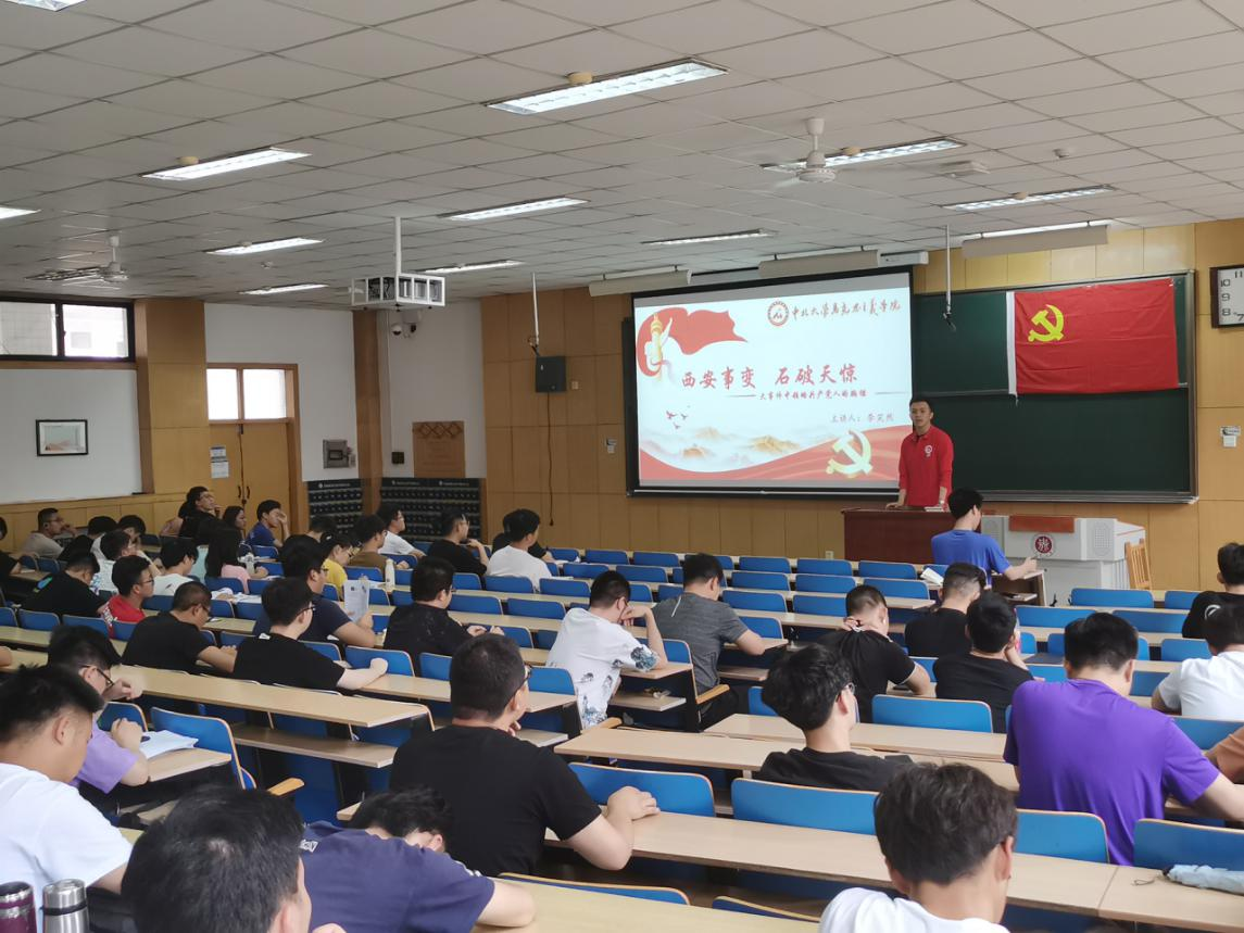 研究生党支部邀请马克思主义学院党史宣讲团进行党史宣讲。宣讲于2021年6月24日16:00在11309H召开,主题为“学党史、守初心、喜迎建党百年”。大会由2020级研究生党支部副书记靳凯毅同志主持,参加本次大会的有全体研究生党员、入党积极分子及发展对象。