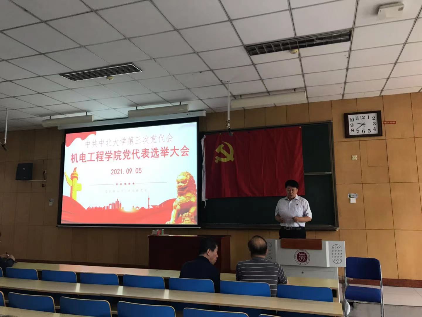 代表选举党员大会在主教学楼11209教室召开,学院112名正式党员参加了选举大会,大会由学院党委书记罗建国主持。