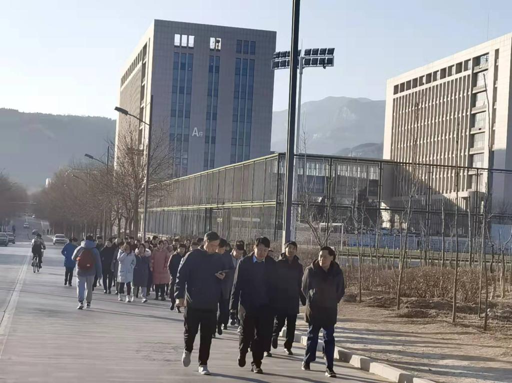 锻炼身体不是一天的事情,是需要持续进行,放假前夕,学院工会组织“健康快乐”健步行活动。为了大家的健康,放下工作,看看蓝天白云,走走美丽的校园,2022年1月13日下午四点,老师们早早的就在科学楼集合,冬日的冷风吹红了脸颊,但每个老师脸上都洋溢着快乐。老师们一起出发,迈着轻快矫健的步伐,欢乐声飘荡在人们的头顶。