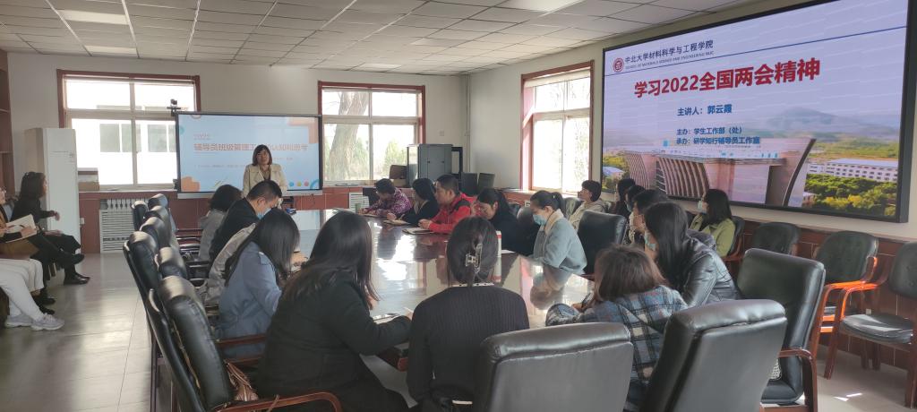 随后,进入工作坊新增的理论学习环节。材料科学与工程学院党委副书记郭云霞老师带领大家一起学习2022年全国两会精神,郭书记首先介绍了2021年工作回顾和重大成就,同时也讲述了2022年国家经济社会发展总体要求和政策取向,以及2022年政府工作任务。各位辅导员们感受颇丰,深刻学习领悟两会精神。
