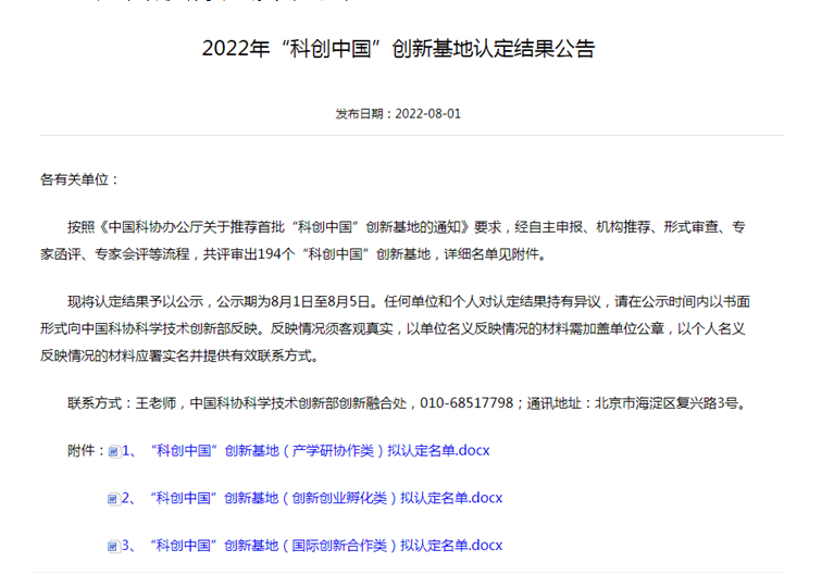 8月1日,中国科学技术协会(简称“中国科协”)网站公布了2022年首批“科创中国”创新基地认定结果,共194个“科创中国”创新基地入选。依托69书吧