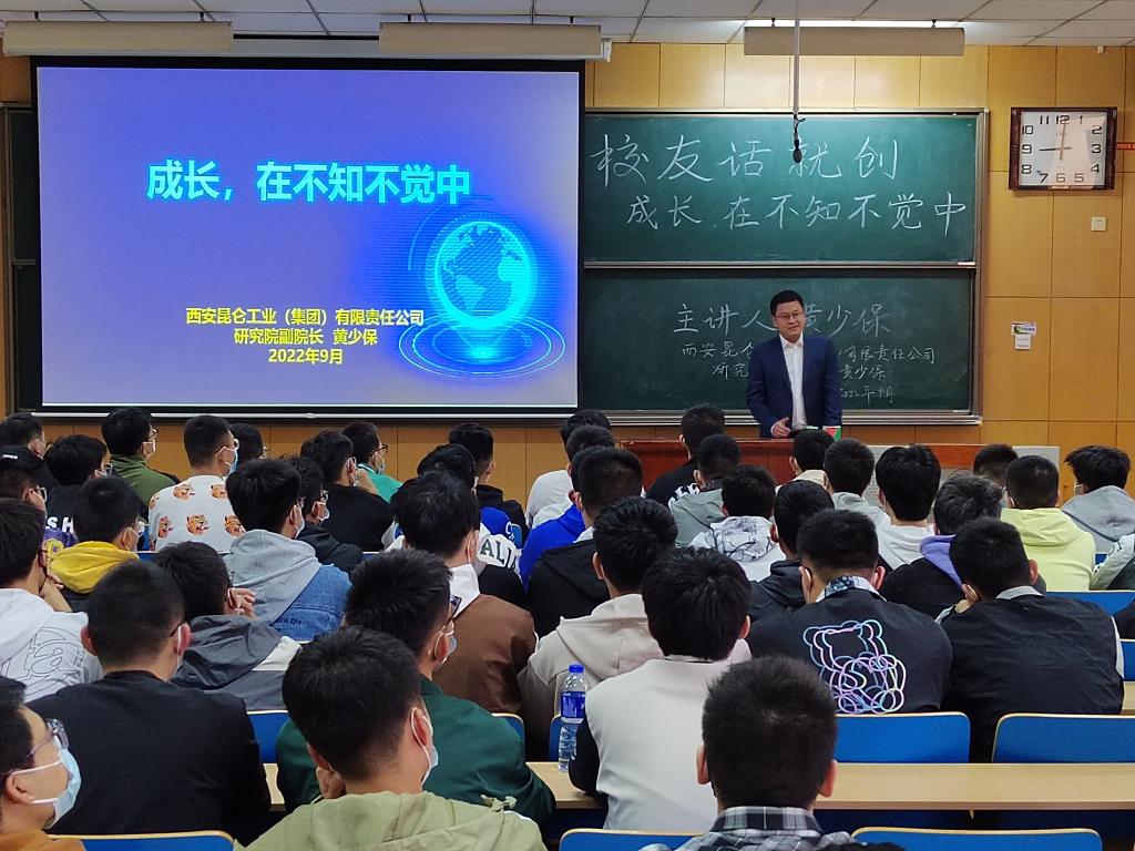 黄少保校友以“成长,在不知不觉中”为宣讲主题,他先是分享了自己的工作经历和公司情况,向同学们介绍了“847”厂的航空特种装备。黄少保校友通过讲述自己的学习经历,指出学习并不是单一的,学习是持续的,是有目标的,是多方面的。在完成专业课学习的同时,利用学院丰富的资源来提升个人能力是非常重要的。在生活方面,他还倡导同学们互帮互助,团结友爱,珍惜友情。