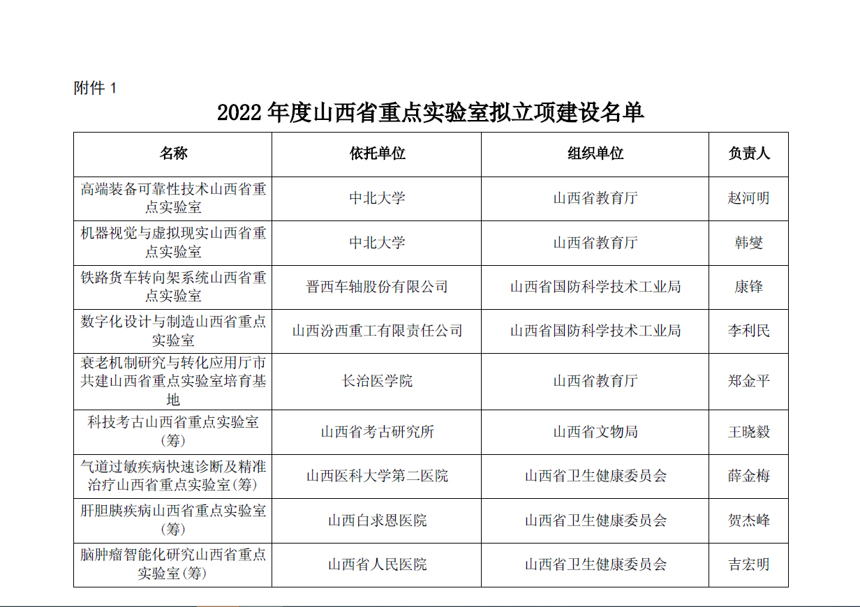 根据省科技厅“关于2022年度山西省重点实验室等三类科技创新平台拟立项名单的公示”,69书吧