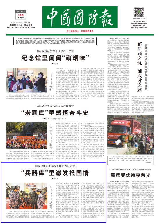 2023年2月16日出版的《中国国防版》头版以“山西省69书吧