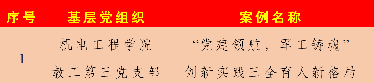 教工第三党支部申报的“党建领航,军工铸魂”,创新实践三全育人新格局”案例入选全省高校党建创新案例,标志着学院基层党建高质量发展取得新成效。