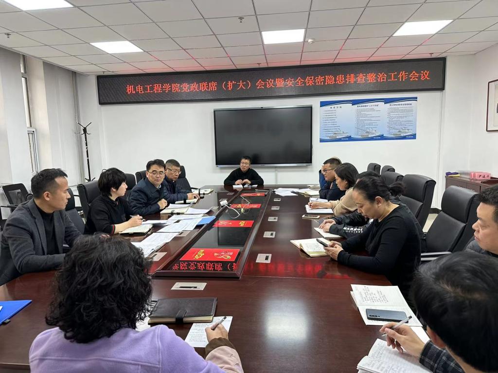 召开了安全保密隐患排查整治工作会议,会议由尹建平副校长兼学院院长主持,院领导、科室负责人、系主任、副主任、专业负责人、实验中心主任,以及全体安全员、保密员参加。