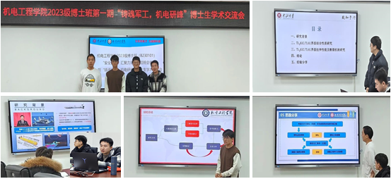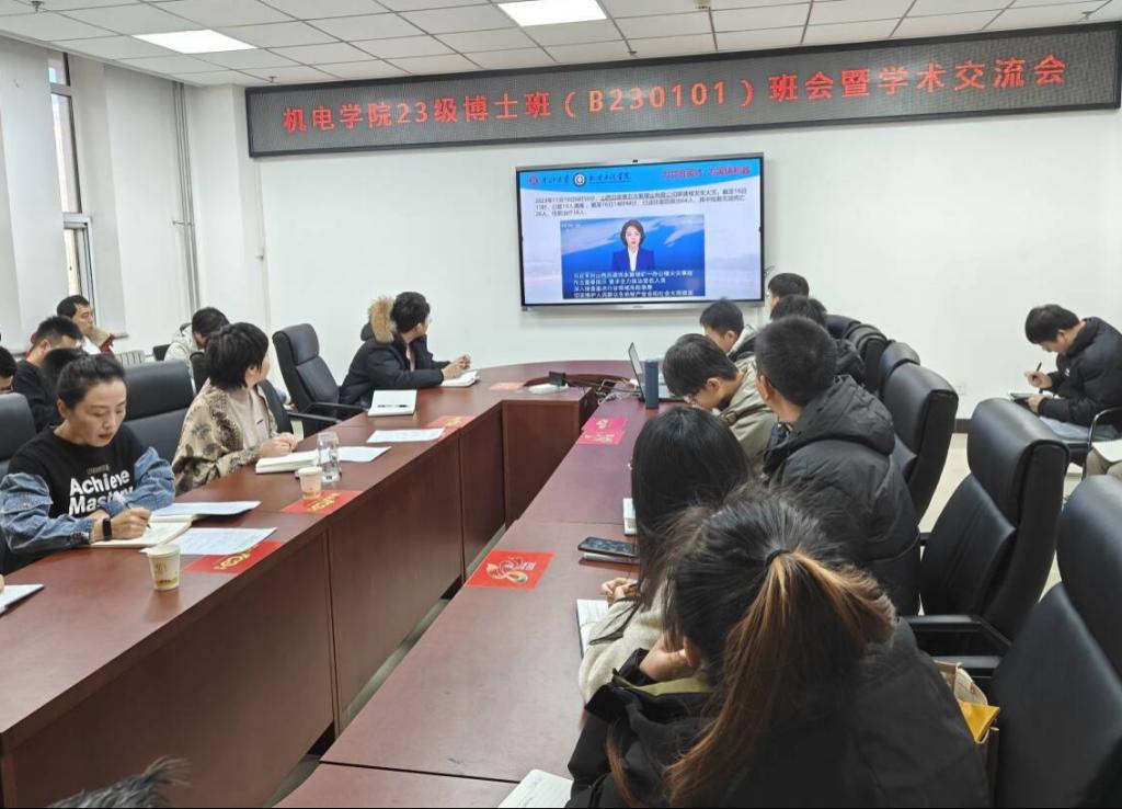 2023级博士班(B230101)在科学楼A座312会议室举办了“安全共建,汇聚力量”主题班会暨第一期“铸魂军工,机电研峰”博士生学术交流会。班主任赵永娟老师、辅导员武瑞芳老师以及博士班在校生参加了会议,会议由班长何隆同学主持。