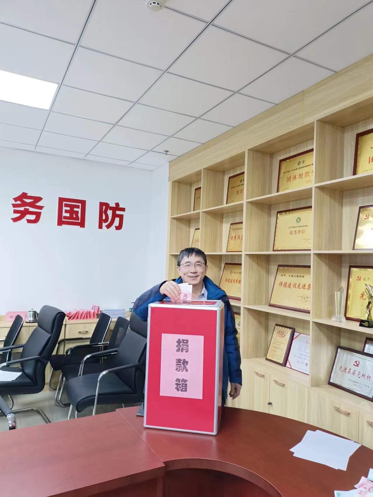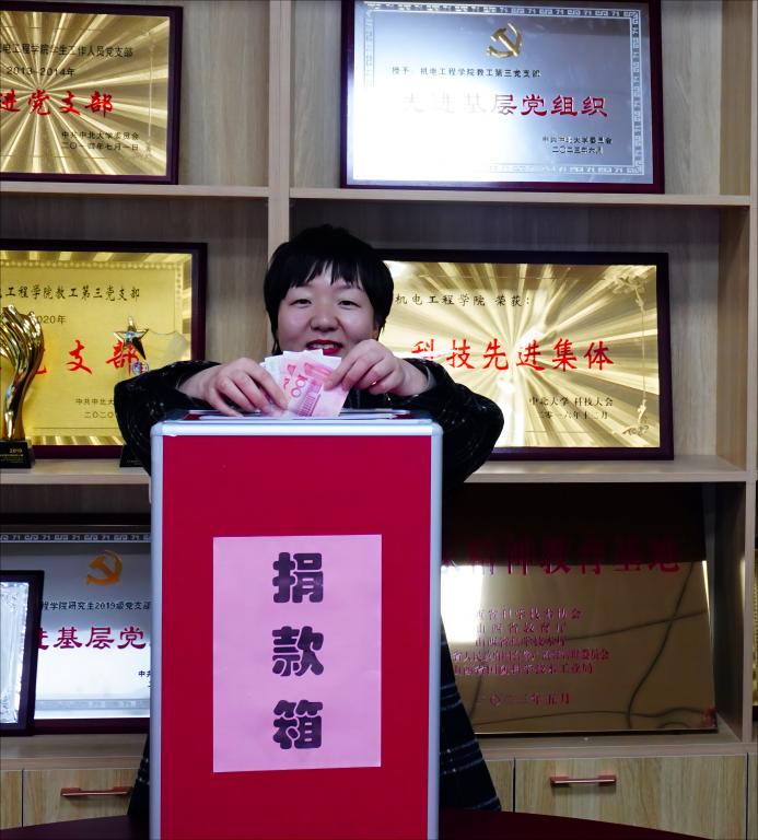 党委书记赵永娟的带领下,院党委副书记刘光、副院长赵河明、李世中及学院老师们于下午5点在科学楼312会议室开展了“送温暖、献爱心”现场捐助活动。