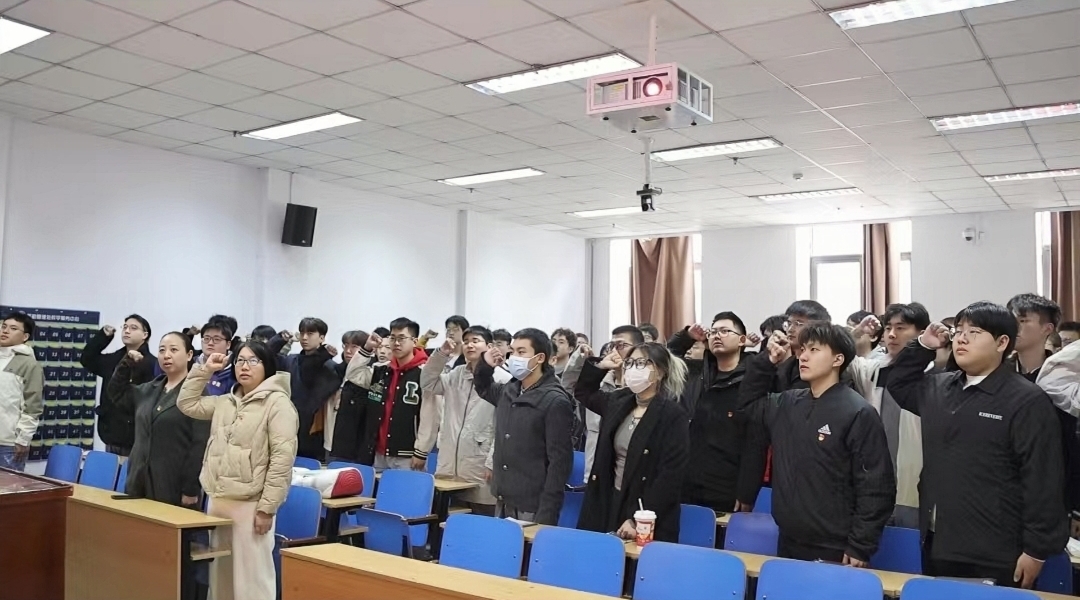 党委组织2023 年12月份接收的62名预备党员举行主题党日活动。学院团委书记李晶晶、党委组织员张凤林、辅导员王丙龙老师参加了活动。