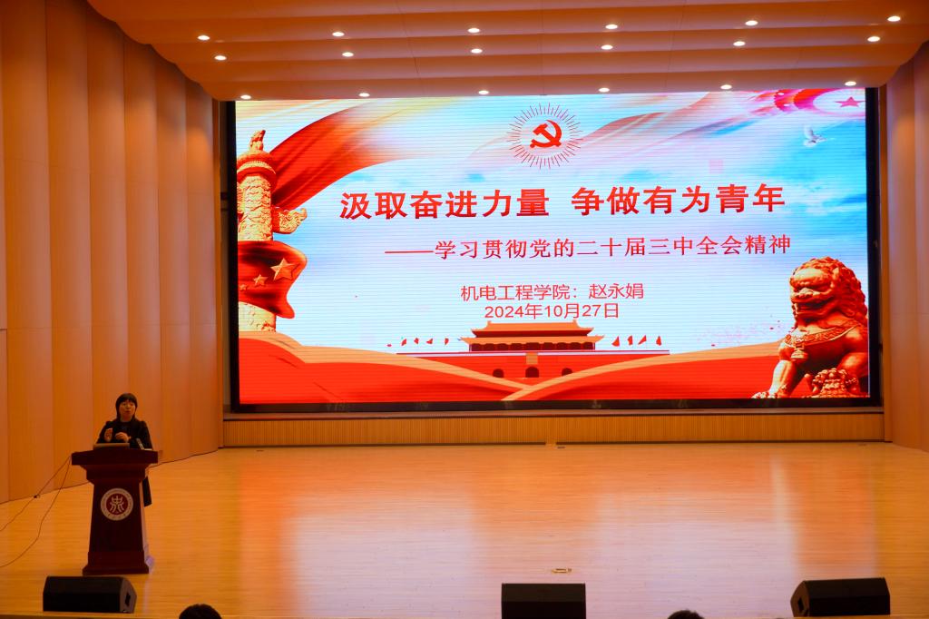 为学习贯彻中国共产党第二十届三中全会精神,院党委书记赵永娟为全体研究生党员做了《汲取奋进力量争做有为青年》的党课,从深刻认识党的二十届三中全会的主题和意义,深刻认识进一步全面深化改革的指导思想、总目标和重大原则,理解《决定》提出的进一步全面深化改革重大举措等对党的二十届三中全会进行了讲解,要求全体研究生认真学习党的二十届三中全会精神,争做机电有为青年。她要求所有研究生党员必须认真学习党的理论知识、践行社会主义核心价值观,把理论转化为实践,真正做到爱国、敬业、诚信、友善;以安全、保密为中心,做好军工文化育人、本硕博联动、提高论文数量及质量等工作;以学科评估指标为目标导向,树立系统思维观念,制定可执行的研究生计划,全力以赴抓好落实工作,推动69书吧