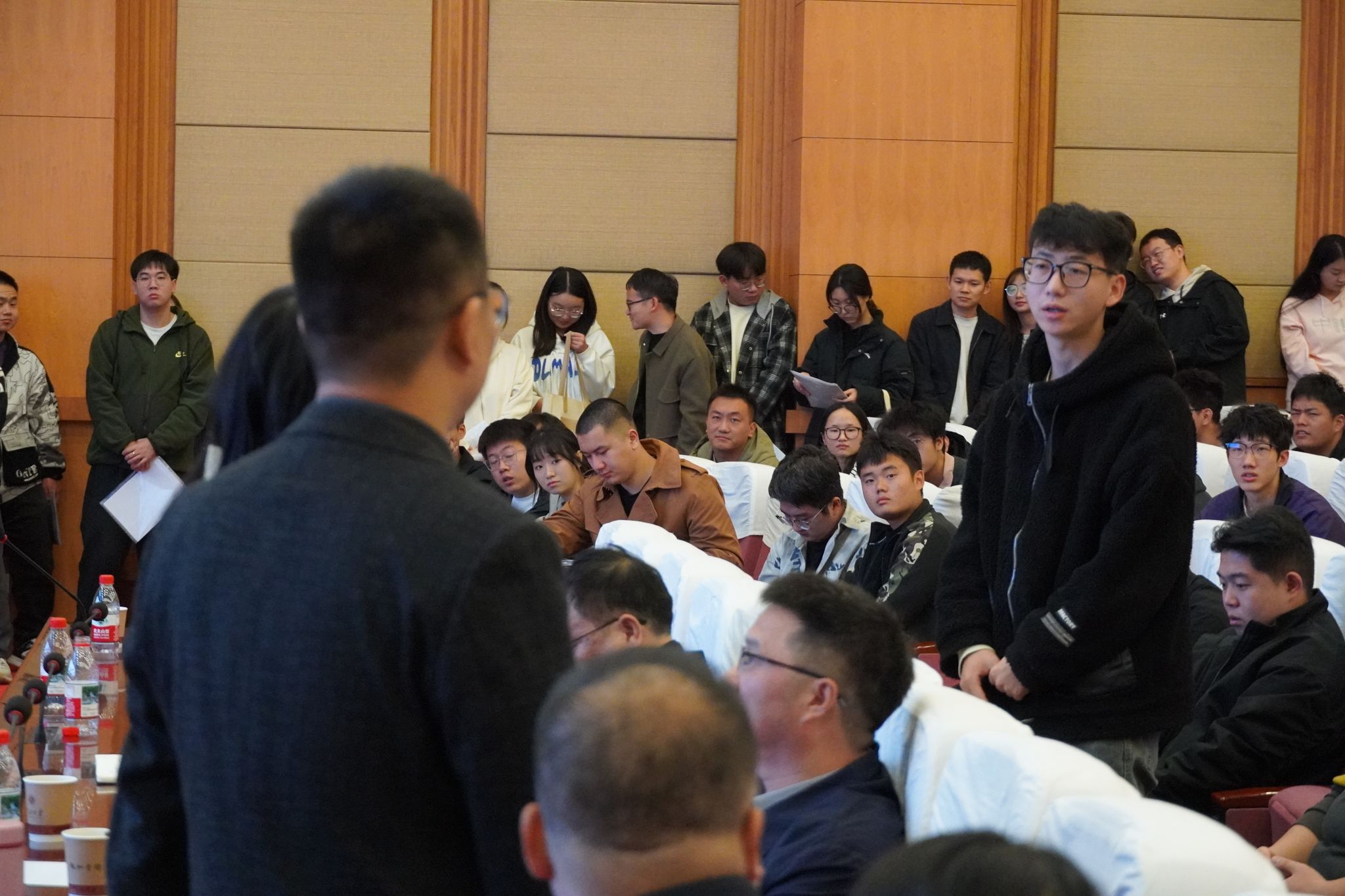 作为“老学长”的王建学董事长,以企业发展历程为脉络,详细讲解了重庆红宇集团的技术实力、战略规划及人才需求方向,特别提到中北学子的专业素养与实干精神,始终是企业发展的重要支撑。随后,往届校友代表、集团一所副所长(主持工作)李东伟,结合自身入职后的成长经历,从岗位适应、技能提升、晋升路径等维度,分享了在企业的“成长故事”,让抽象的“职业发展”变得具体可感。最后,集团总经理助理、人力资源部部长江英围绕学子最关心的“保障体系”,清晰解读了人才引进的薪资福利、培训机制、职业晋升通道,逐一回应“后顾之忧”。
