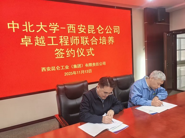 在西安昆仑(集团)有限责任公司,总经理郝坤鹏主持座谈并介绍企业发展情况。作为具有深厚历史底蕴的军工企业,西安昆仑集团在装备制造、技术研发等领域成果显著,与学校有着良好的合作基础。会上,双方聚焦项目合作深化、学生联合培养、校友资源联动、毕业生就业服务、卓越工程师计划实施等议题交换意见。郝坤鹏总经理指出,企业发展离不开高素质人才支撑,希望与学校进一步拓展合作维度,在卓越工程师选拔、校企导师联动机制建立、实践教学基地建设等方面取得新突破。尹建平副校长表示,学校将紧扣企业人才需求,优化人才培养方案,积极参与企业“ 卓越工程师计划”,通过共建校企导师队伍、定制化培养课程、强化实践教学环节等方式,提升学生工程实践能力与创新素养。座谈会后,双方举行了卓越工程师联合培养协议签订仪式,标志着校企在人才联合培养领域进入实质性合作阶段。此外,双方还就校友资源整合、毕业生就业推荐等工作达成一致,明确将通过校友座谈会、企业宣讲会等形式,搭建校企人才交流桥梁。