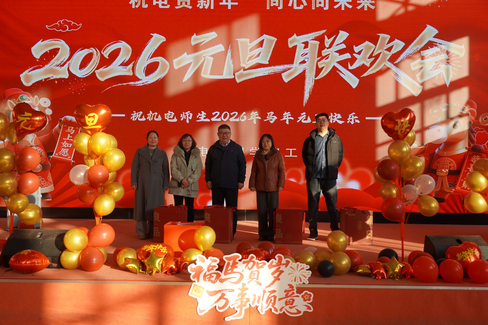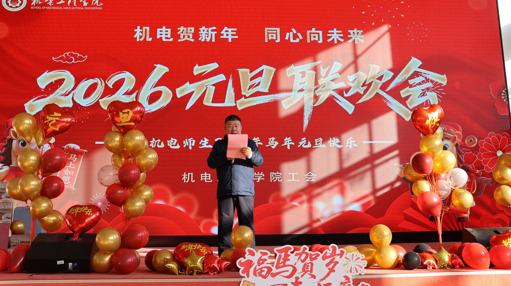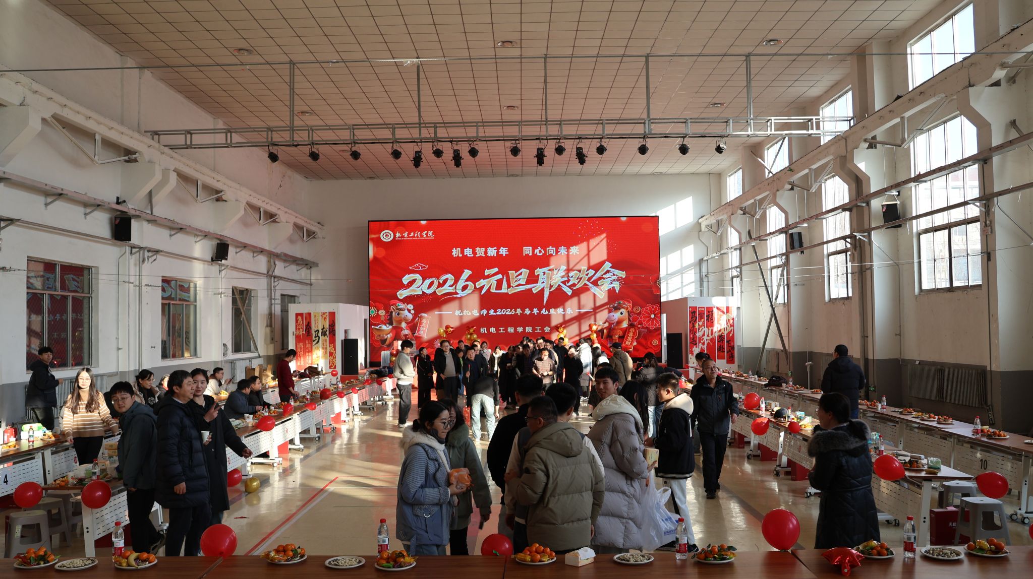 在东区训练馆举办了“‘机电贺新年,同心向未来’2026年教职工元旦联欢会”。学院领导、教职工到场参加联欢会。大家欢聚一堂,一起挥别旧岁,迎来崭新的2026年。