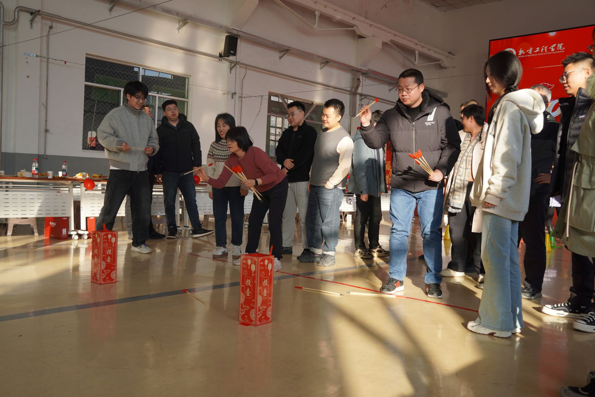 联欢会现场氛围热烈浓厚,福箭投壶、圈定好运、 沙包纳福、乒乓贺岁等各类趣味活动轮番上演,精彩纷呈。老师在趣味博弈中拉近距离、增进情谊。备受期待的抽奖环节更是将现场氛围一次次推向高潮,随着幸运号码的逐一揭晓,各类丰厚奖品相继送出,中奖的老师手持奖品,脸上洋溢着幸福的笑容,现场暖意融融、掌声不断。
