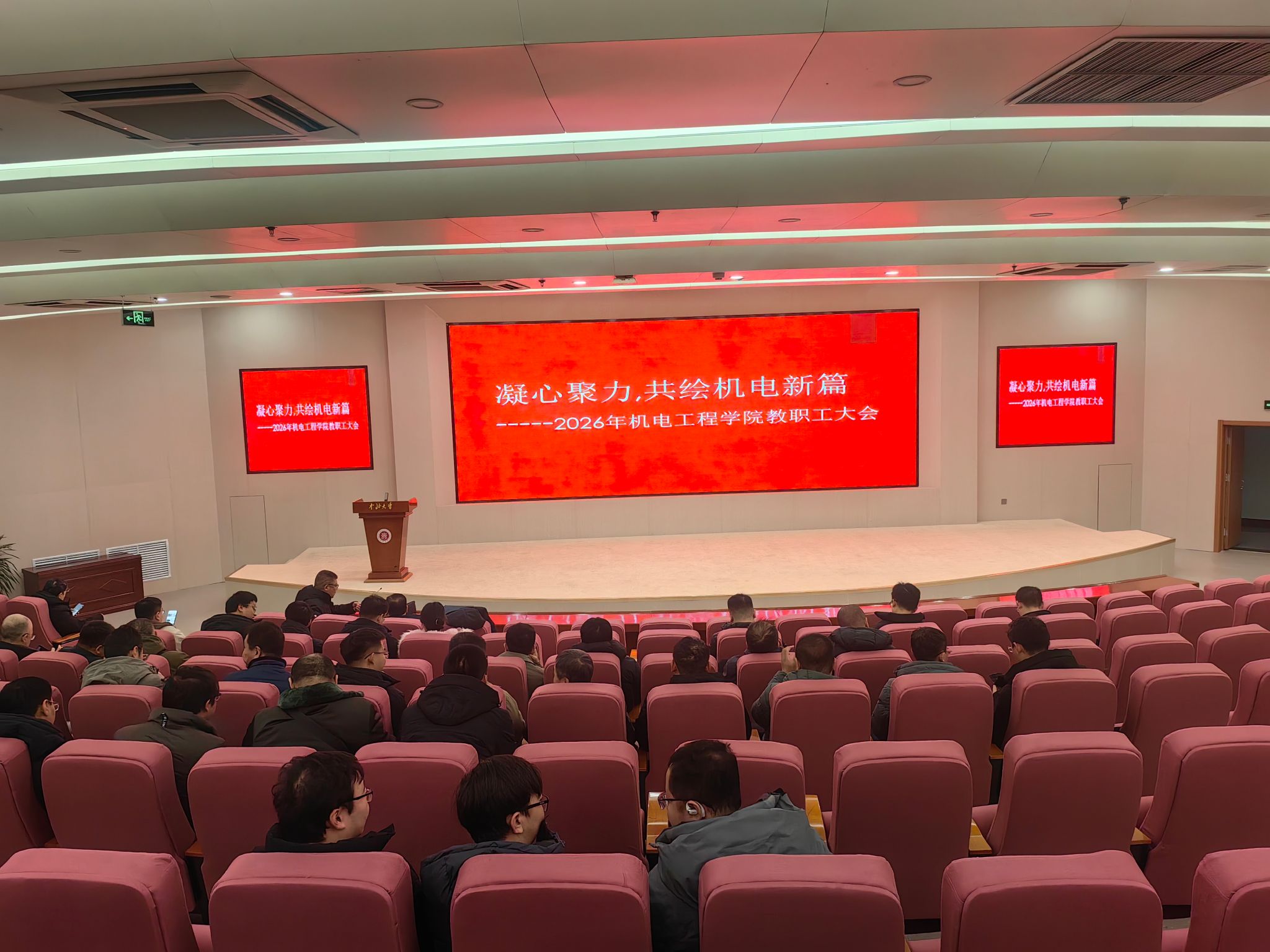 2026年教职工大会隆重召开,全体教职工齐聚一堂,共同复盘过往发展成效,系统部署年度重点任务。大会由学院党委副书记田海燕主持,学院领导班子成员依次围绕分管领域,作工作总结与未来工作部署。