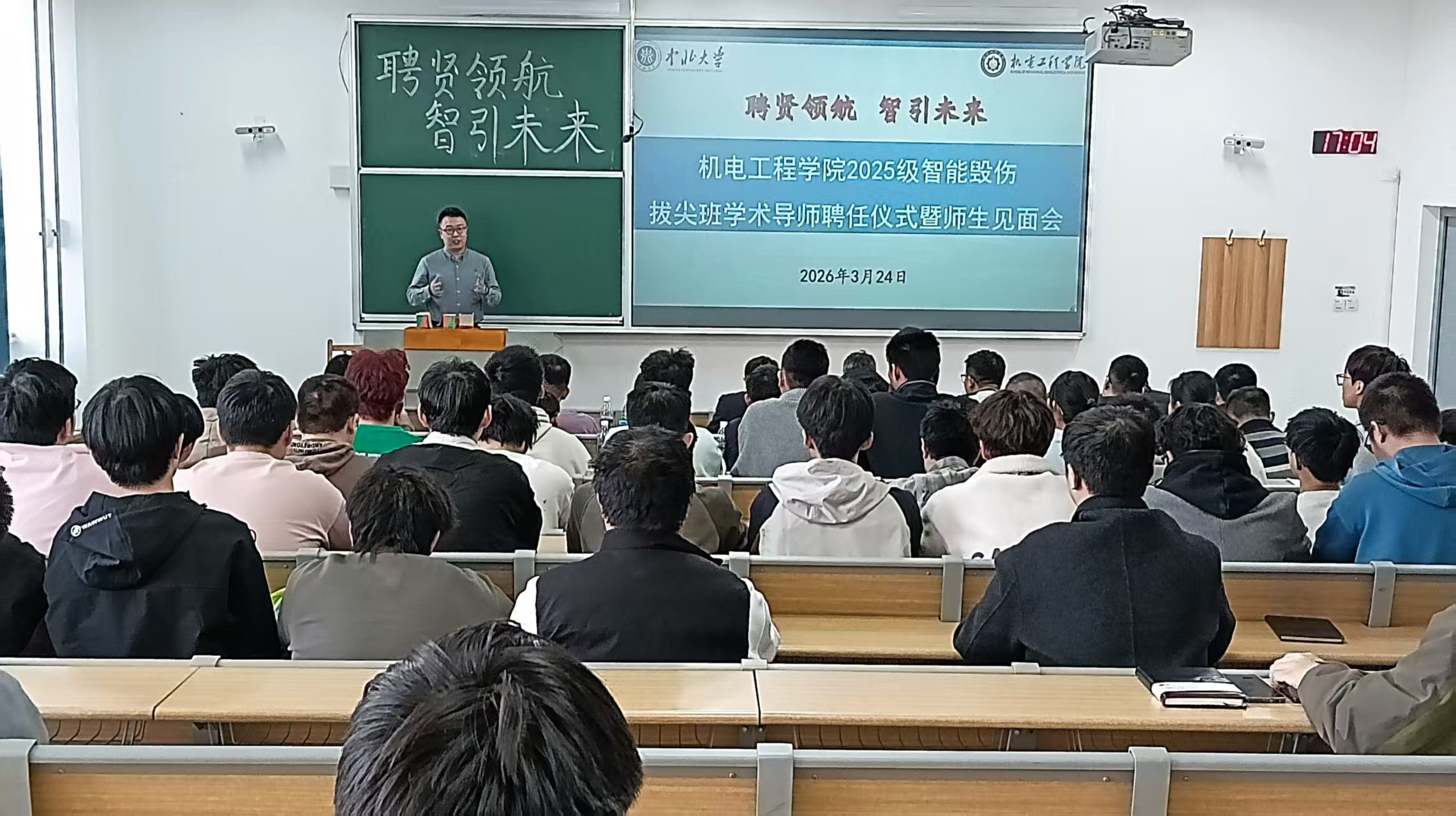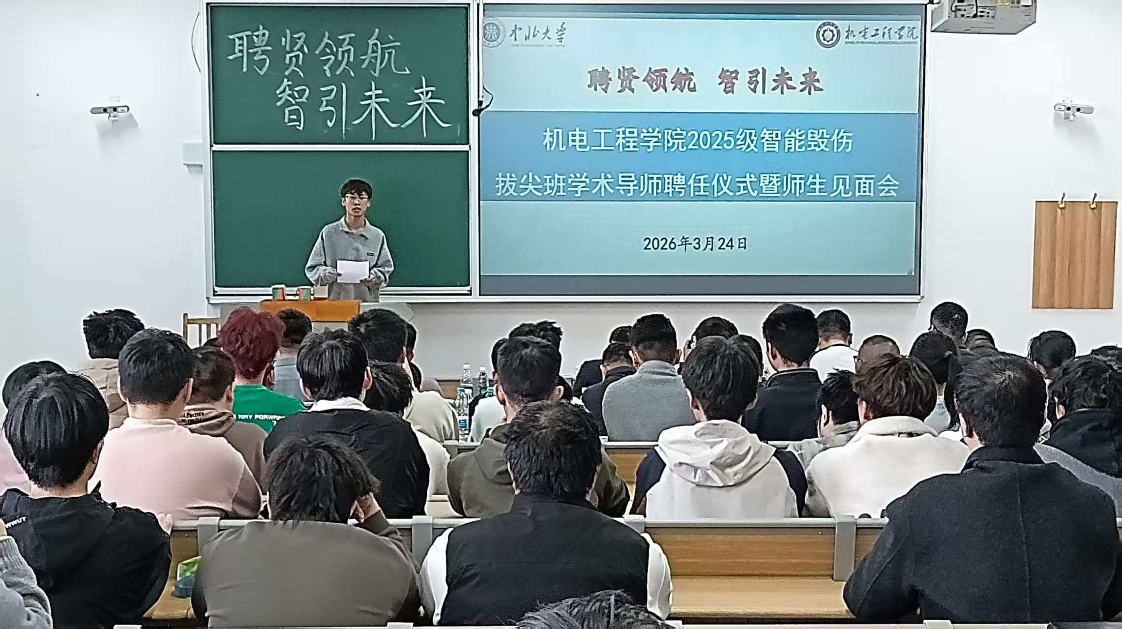 为进一步推进拔尖创新人才培养,强化师生学术交流与协同育人机制,3月24日下午,学院17202H教室举行2025级智能毁伤工程拔尖创新人才班学术导师聘任仪式暨师生见面会。教学副院长李世中教授、在校学术导师及拔尖班全体学生参加活动。活动由弹药工程与爆炸技术专业负责人张树霞主持。