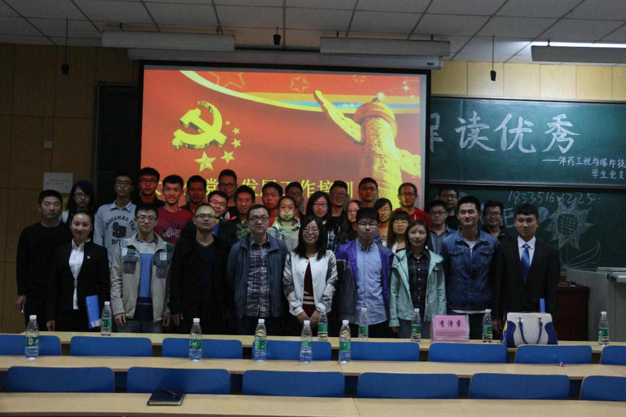 参加此次交流会的嘉宾有2015级弹药专业新生班主任祁亚芳老师、杨博炜老师,学生党支部各支部书记张耀威,谭玉琳,崔金珂,李泽章,王鹏及弹药党支部全体党员同志。