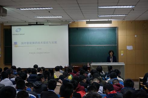 的邀请,作题为《国外智能弹药技术现状及发展》的学术报告。参加此次学术报告的有副院长李强教授、副院长赵捍东教授、学科部主任高跃飞教授及弹药工程与爆炸技术专业教师王坚茹教授、梁增友教授等,学院300余名博硕士研究生、本科生代表聆听了报告。