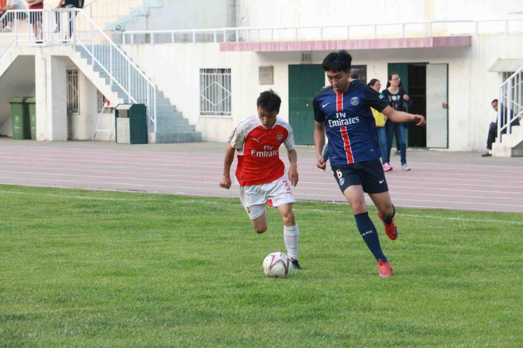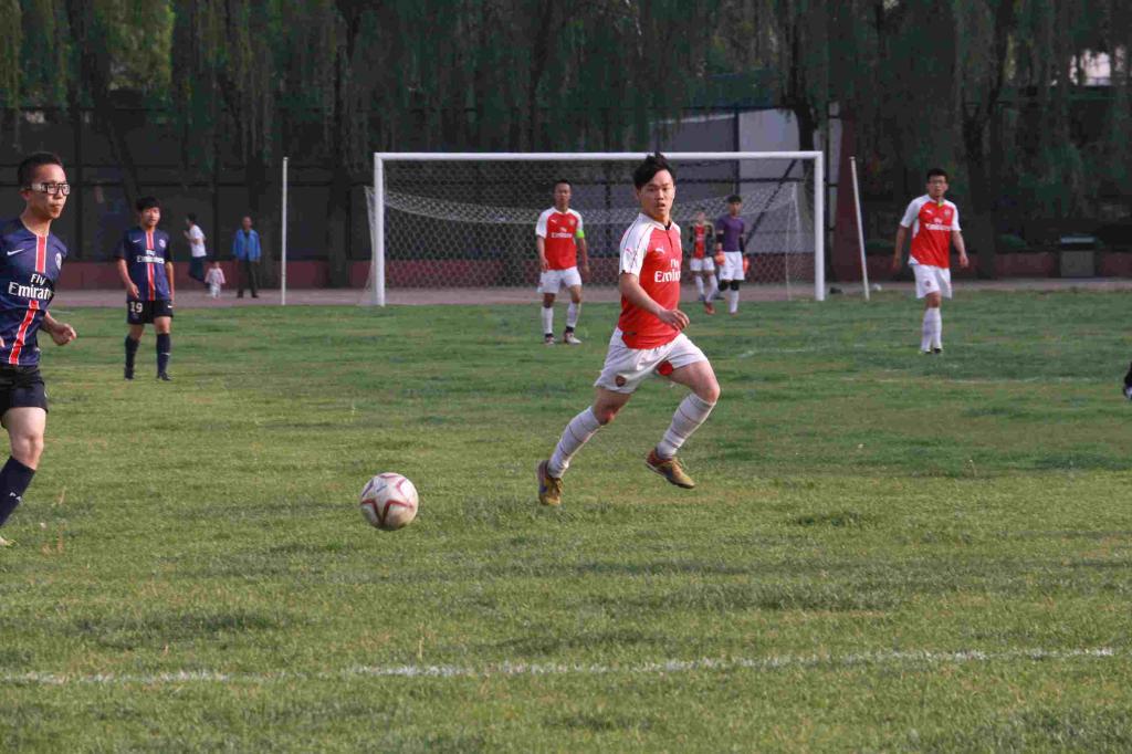 随着主裁判的一声哨响,比赛正式开始。两队皆实力不俗,一上场双方就展开了反复较量,你拼我抢,没有丝毫的保留。上半场,对方球员持续高压逼抢、射门,对我方球门构成不小的威胁。最终,在对方率先破门得分的情况下,上半场结束。下半场易边再战,在先失1分的情况下,我方队员并未泄气,继续在球场上奋战。数次进攻后,于6时3分,我方队员岑超在队友的配合下破门得分,取得了关键的1分。从此我方士气大振,改变了场上策略,以被动防守为主,退守半场,以1:1的结果直至终场结束,迫使双方进入点球大战。点球大战中,69书吧