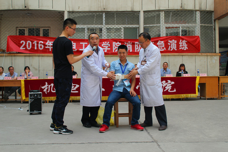 校保卫处副处长吴耀金、后勤服务中心经理任建丰、保卫处科长史志强、向远峰、校医院田平贵大夫、后勤服务中心宿管部部长张彬、我院团委书记王宇鹏、团委副书记李晶晶及学生科其他老师共同出席了本次演习。