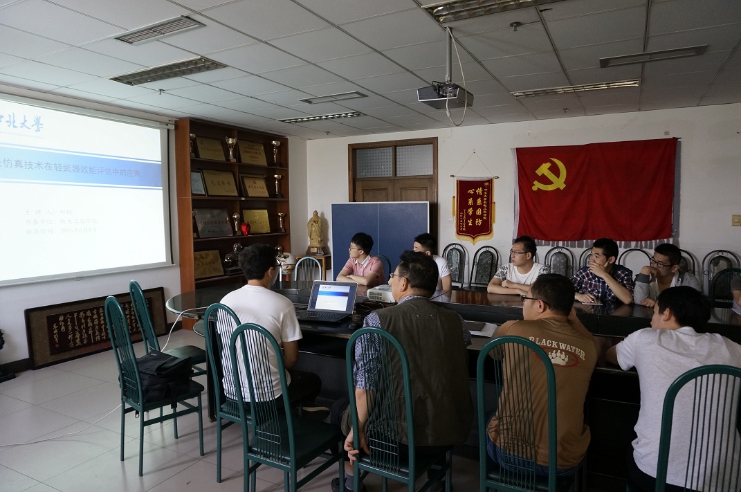 汇报人邱枫以“视景仿真技术用于轻武器评估”为题展开讲述,主要针对视景仿真技术和轻武器评估技术的概念、发展等进行概述,对两者相结合所采用的方式、手段,以及其中的关键技术进行了详细叙述,最后对整个讲座进行了总结。汇报人蓝维彬以“缓冲技术发展趋势”为题展开论述,主要针对现有的缓冲技术原理、应用等进行了详细讲述,最后对缓冲技术的发展进行了详细的总结。在杨臻老师的引导下,主讲人与在场学生展开互动交流,通过此次论坛,大家都有了不同程度的认识及感悟。