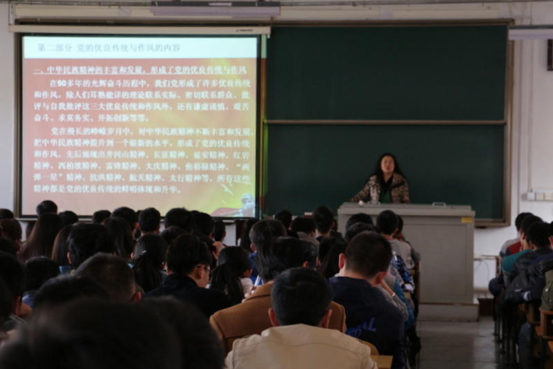 党委组织部副部长雷丽荣老师,雷老师的主讲题目是《党的优良传统与作风》。