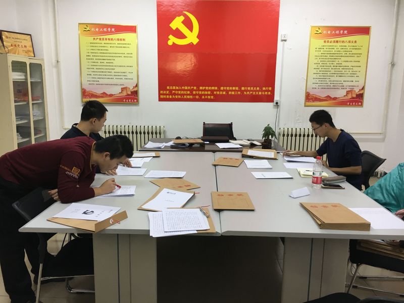 随后,第二学生党支部全部支委对上周发展对象提交的入党申请书进行审查,支委们从材料的书写和内容两个方面进行审查,将入党申请书不符合要求的地方标注出来,以便各重点发展对象及时改正。在审查材料的过程中,支委们也对各重点发展对象在材料书写中出现的问题进行了总结,方便日后开展工作。
