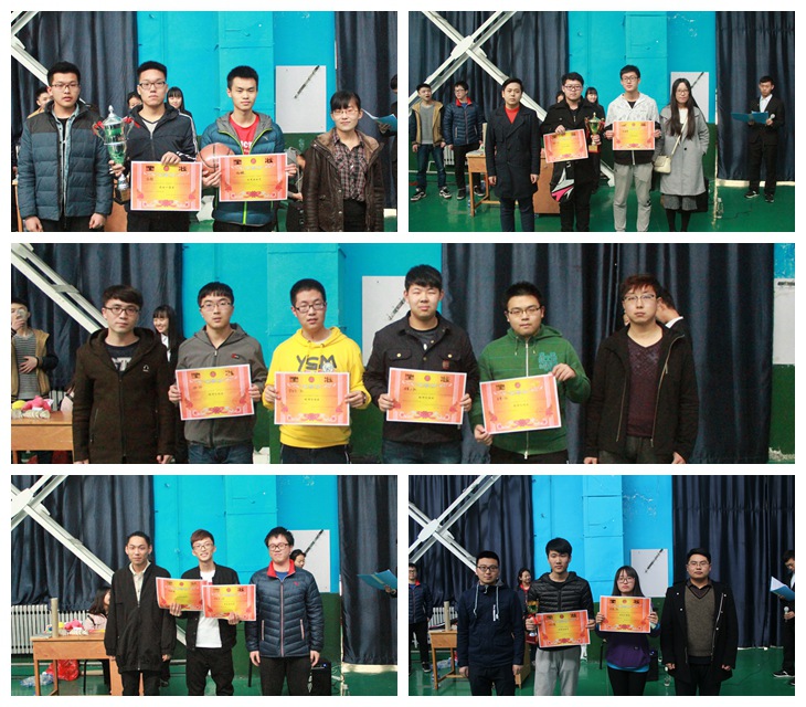 上午8时, 由学生事务管理中心、学生会等各部门人员组成的8支队伍在西区羽毛球场展开了比赛,本次比赛采用抽签的淘汰制,经过激烈的竞赛,4支队伍脱颖而出,晋级下午的决赛。下午2点决赛的号角正式拉响。收到裁判员指示后,双方球员积极向上,力求取得优势,比分也随之交替领先。下午3点30分,总决赛正式开始。由晋级的3支小队两两竞争,经过激烈的角逐后,社联队艰难的取得了本场比赛的冠军,团委一队、学管二队分别获得第二名、第三名。其中,共有4名同学获得了“优秀个人”的称号;学生科于晶、赵振霞老师以及学生事务管理中心、学生会等部门学长为本次比赛获奖团体和个人颁奖。