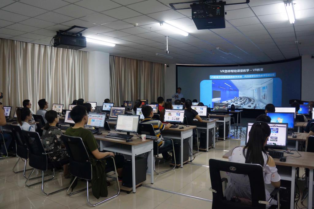 报告中,吴军先生深入浅出的介绍了最新的虚拟现实相关前沿技术,如何将体验式、互动式、沉浸式、实践式的教学方法完美的应用于教学过程中,提出4种创新授课/实训模式,诸如:学生实训/学习第一视角、教师第一/第三视角授课、传统实训与虚拟现实实训相结合的实训方式、基于裸手图像识别的虚拟交互等。讲解了如何借助成套的科研设备有效地参与到虚拟现实的前沿研究中,协助教师在虚拟现实教育应用领域成为领先者。