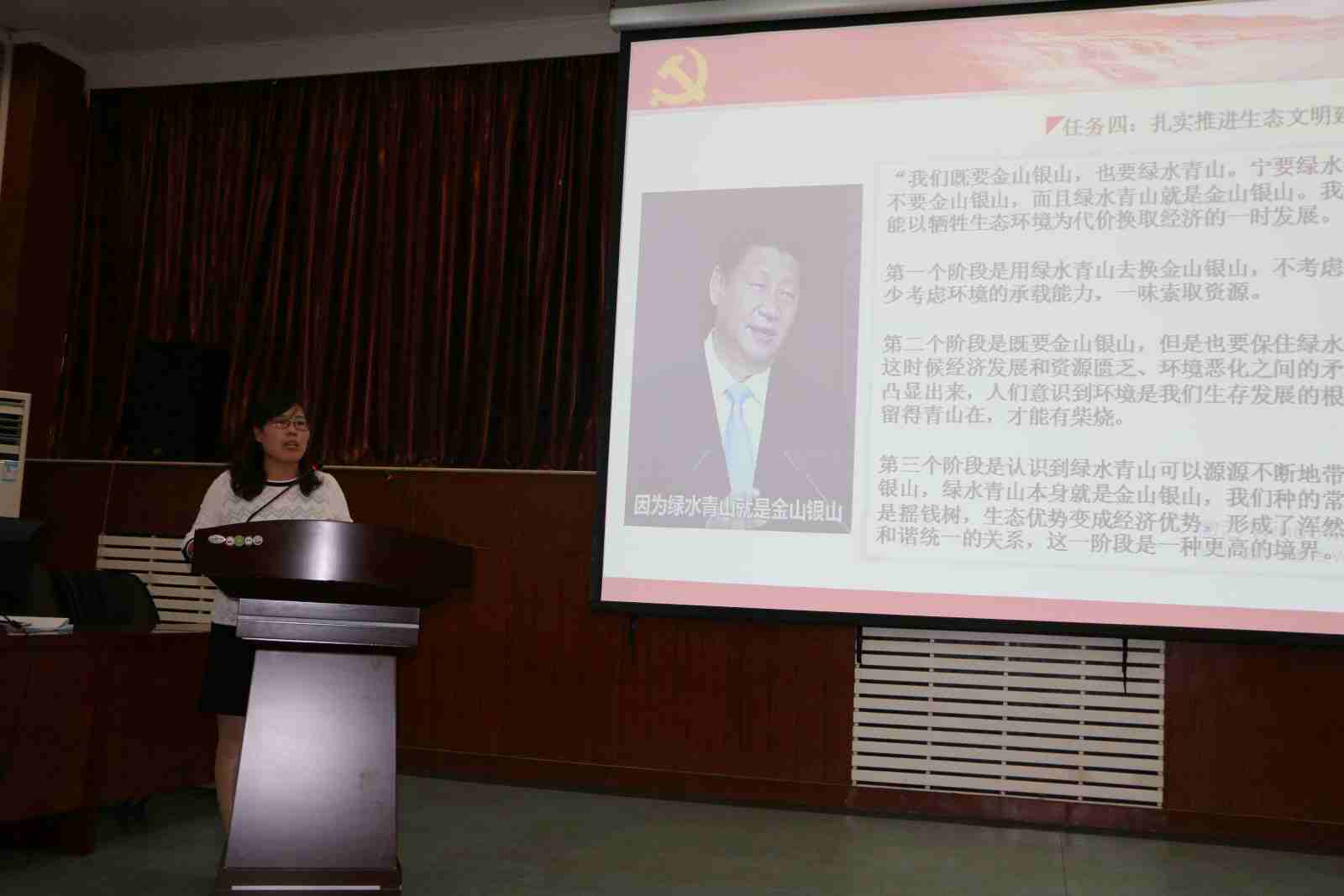 张丽花老师从亲切关怀 殷切期盼、牢记嘱托 砥砺奋进、维护核心 见诸行动三个方面对习近平总书记视察山西重要讲话精神做了深度解读。习近平总书记亲临山西视察并发表重要讲话,在山西发展史上具有重要里程碑意义。作为高校辅导员要深入学习习近平总书记重要讲话精神,全面、准确、深入把握习近平总书记重要讲话的精神实质,坚定理想、学以致用,把讲话精神落实到实际工作中去。要教导广大青年学子勤学、修德、明辨、笃实,在实现中国梦的伟大实践中创造自己的精彩人生,争做社会的栋梁。