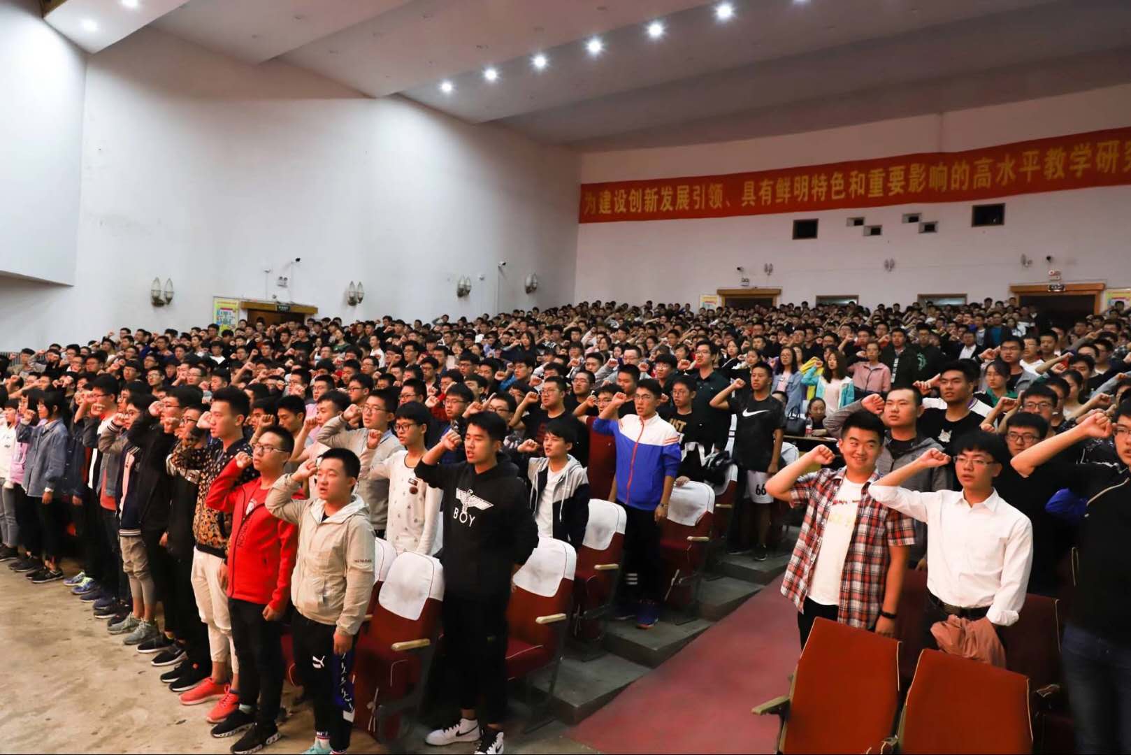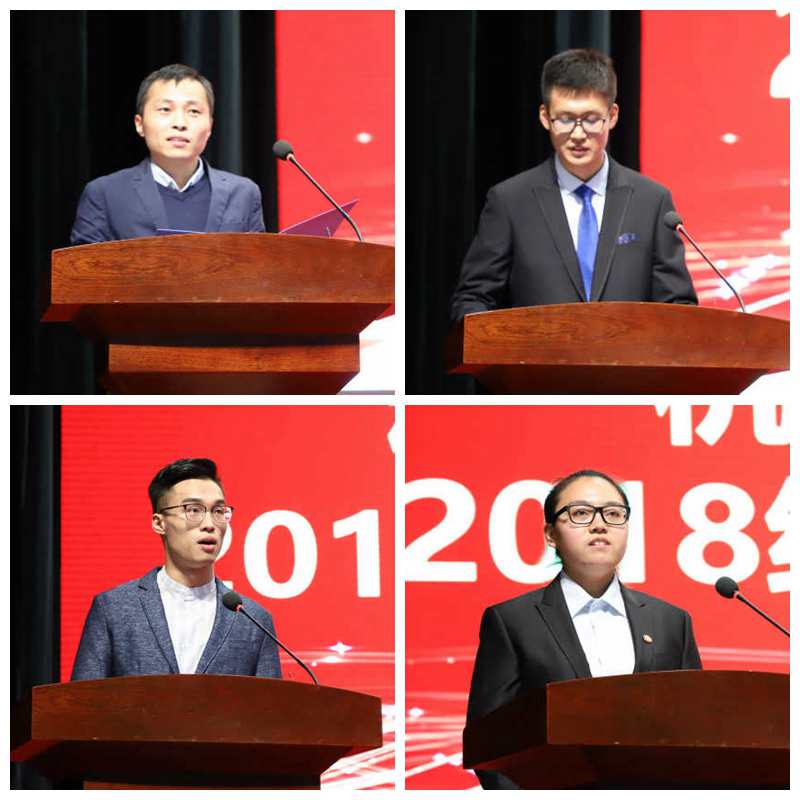 在校生代表16010142班岳航同学、2018级本科新生代表18010643班朱子文同学 、2018级研究生新生代表冯志凡同学先后进行发言。接着18010142班彭千龙同学带领2018级新生进行入学宣誓。