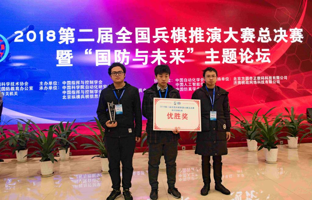 周书行、陈一波、亓朝阳同学组成的三人编队最终以积分18的绝对优势夺得了地方组第一名,并代表地方组在颁奖典礼上与军队组第一名进行了表演赛,在周书行的带领下,团队沉着应战,全力拼搏,经过激烈对抗,最终在三人的高度配合下取得了表演赛最终胜利,为我校争得荣誉。69书吧