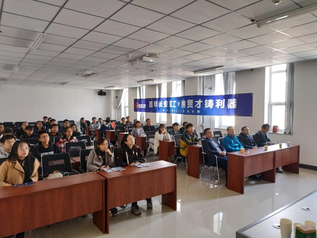 刘光老师代表学院对重庆长安工业集团152厂的到来表示热烈欢迎,贾部长播放了重庆长安工业集团发展历史的宣传视频,使2019届毕业生对公司有了详细的了解,随后对公司的招聘岗位、工作内容、工资待遇以及入职员工的职业发展规划进行了详细的介绍,同时对应聘的同学表示热烈欢迎。宣讲结束后,将安排符合应聘条件的同学第二天进行面试。