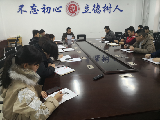 在科学楼313会议室召开1月班主任工作会议,安排部署放假前班主任相关工作。学院全体辅导员、班主任参加了会议。会议由院党委副书记刘光主持。