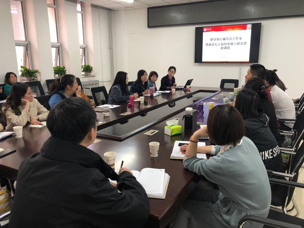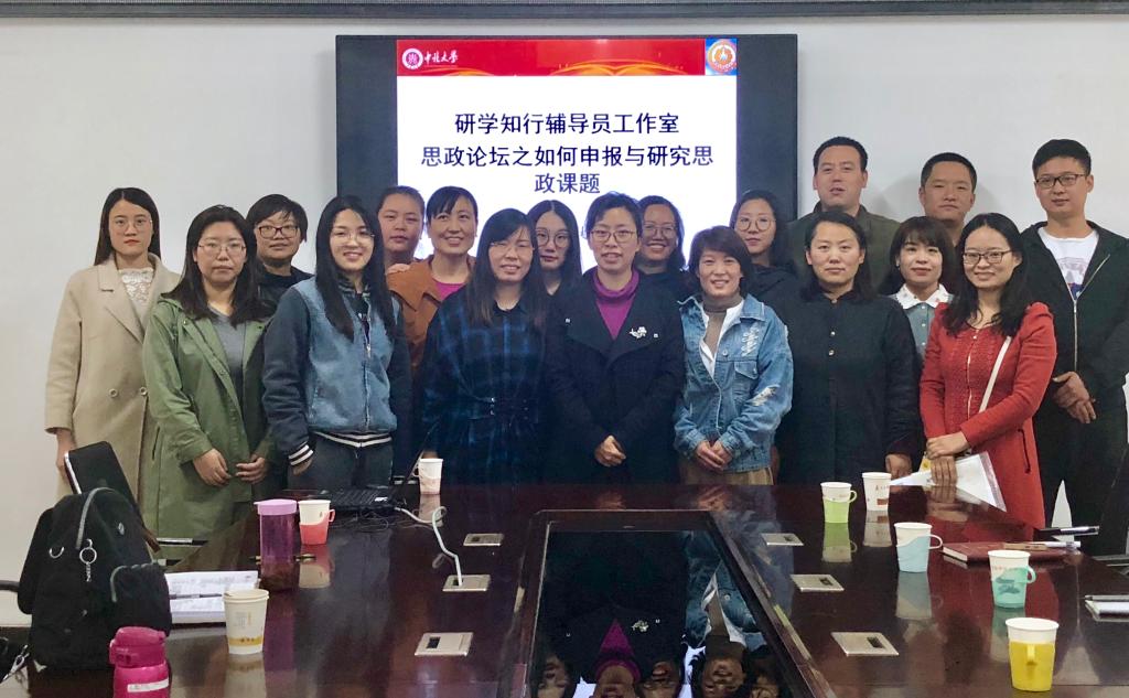 为推进辅导员队伍专业化、专家化建设,为帮助辅导员找准研究方向,更好更快地实现自我成长目标,2019年3月27日下午,研学知行辅导员工作室第一期思政论坛于科学楼313会议室成功举行。人文社会科学学院科研副院长杜鹃老师、人文社会科学学院思政教研室曹妍老师做客论坛,并作了题为“如何申报与研究思政课题”的主题报告。本次论坛由研学知行工作室负责人张丽花老师主持,各学院党委副书记、专职辅导员代表20余人参加了此次论坛。