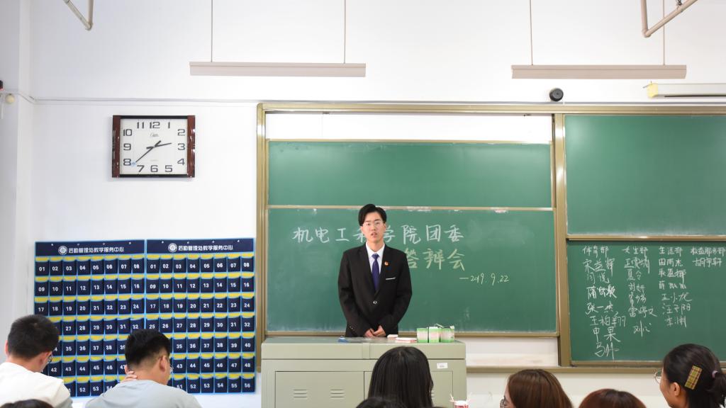 最后,团委副书记张鑫泽发表讲话。他着重强调了学生干事要加强思想道德建设,提升学习能力,发挥模范作用,并希望学生干部能充分发挥奋斗精神,实现自己的工作理想。