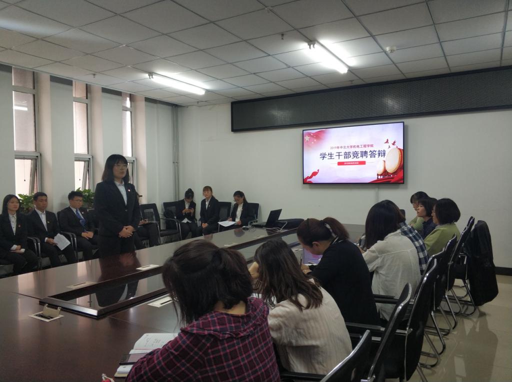 “学生干部竞聘答辩”于科学楼313会议室举行。出席竞聘大会的老师有学生科科长张丽花,院团委书记李晶晶,以及学生科老师段志薇、段雪倩、贺婧、刘凯琼、王姣和张悦,上届学生会干部等。