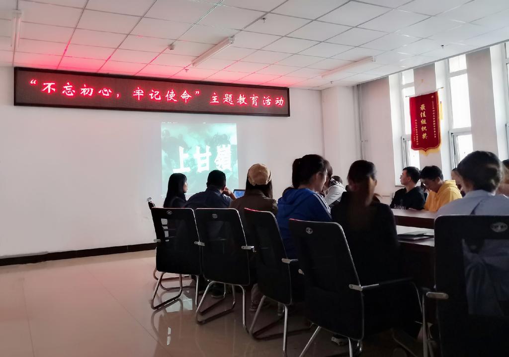 组织全体党员集体观看电影《上甘岭》,影片中我们的中国人民志愿军在敌强我弱的艰难险阻下迎难而上、在黑暗中摸索前进、在极端恶劣环境下团结互助、用生命坚守阵地直到取得胜利,这种顽强拼搏精神以及对祖国的挚爱之情无不感动着在场的每一位党员。影片结束,大家分享了观影体会,我们要学习这种“上甘岭精神”,以此鞭策我们,用实际行动捍卫祖国领土和国家权益,通过努力学习为祖国献策献力。
