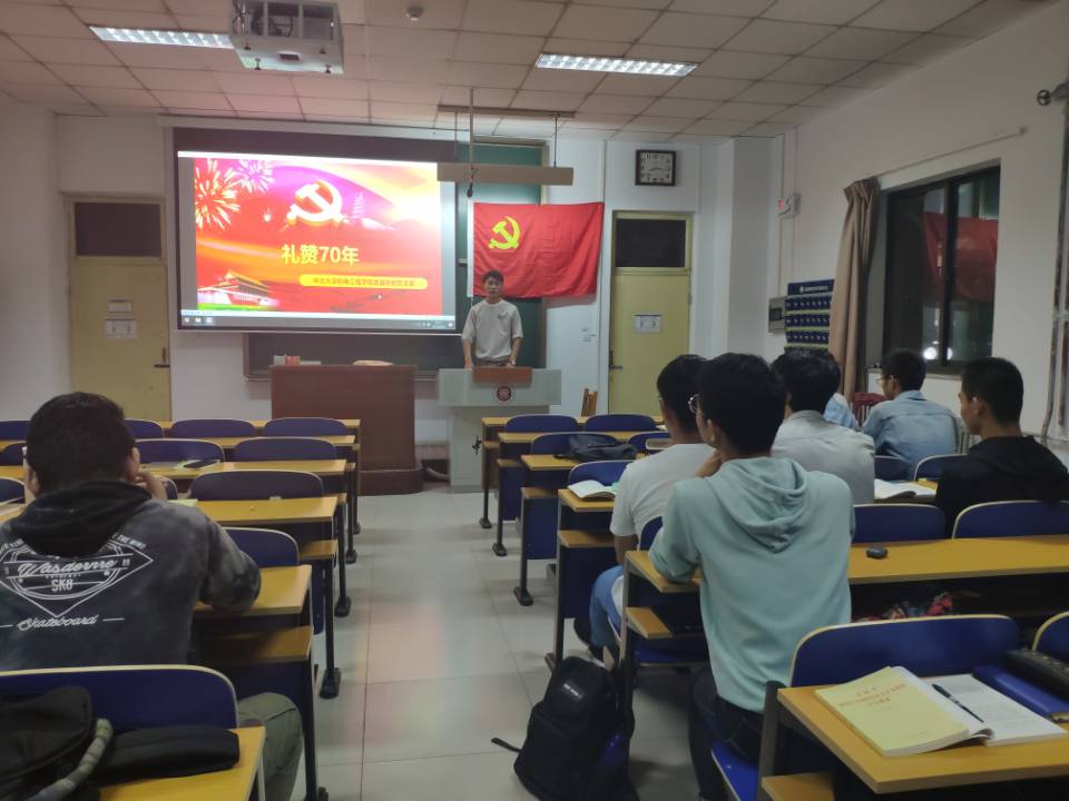 武器发射工程专业党支部在11216教室成功举办了纪念中华人民共和国成立70周年党日活动。本次活动由支部副书记薛淑娟同志主持,支部全体党员参加。