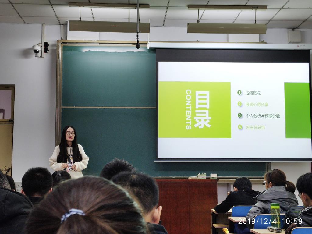 各班级广泛开展了本班级成绩研判会。各班在班主任老师的指导下,针对班级期中考试成绩展开了系统全面的分析。成绩研判会的目的是使班级同学在差距中寻找适合自己的学习方法。其中,19010503班、19010504班在集中展示班级均分、优秀率、不及格率等的同时,还组织班级成绩优异的同学做了学习经验分享;19010405班则针对班级同学期中考试中出现的重难点做了系统的总结;19010403班虽在期中考试中成绩未达到理想水平,但是在班主任老师的帮助之下同学们积极挖掘了自身不足,寻找学习差距,并以此为动力,争取在期末考试中取得优异成绩;19010409班则针对班级同学的不同特性积极开展了分析比较以此来寻找最适合班级同学的学习方法;19010s01班则充分对比本班和往届班级的成绩差异,抓落实,寻不足,争取能在期末考试保持良好的学习劲头。