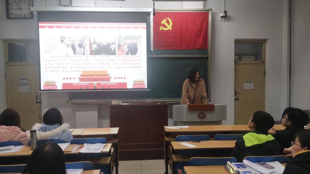 支部书记段老师带领支部同志共同学习了习近平视察山西重要讲话精神以及相关应知应会知识等等;随后,各党小组分配任务,要求各党小组要在课余时间组织小组成员学习文献精神。最后,段志薇老师强调,我们要把重温“三篇光辉文献”、重新学习习总书记的重要讲话精神当做一种习惯,不忘初心,时刻反省自己,希望同志们在会后继续学习,把思想和行动统一到习近平总书记讲话精神中去。