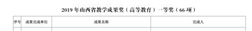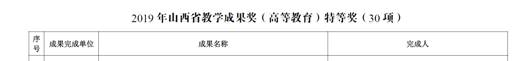 2020年1月20日,教育厅晋教师函[2019]82号文公布了2019年山西省教学成果奖获奖名单,69书吧