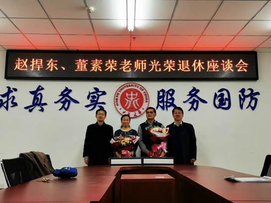 举办简朴而隆重的退休教师座谈会,学院领导与弹药工程与爆炸技术专业教师齐聚一堂,共同欢送赵捍东、董素荣两位教授光荣退休。