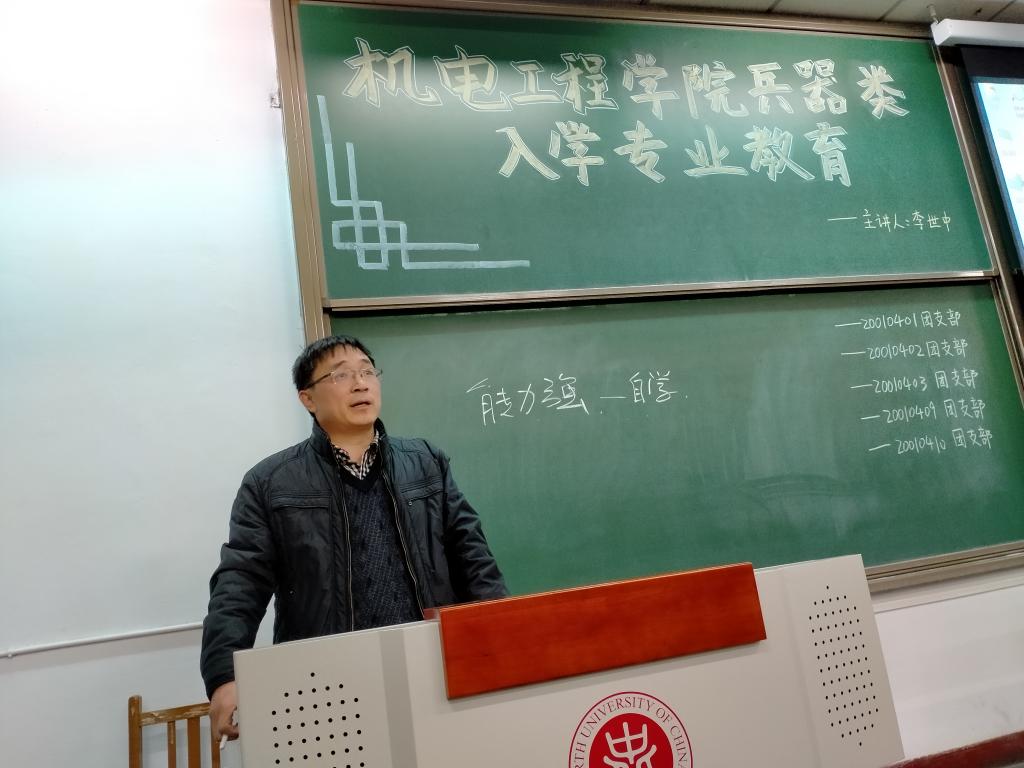 兵器类专业的具体情况;接下来李院长对同学们在大学的4年学习生活进行了规划,指出大学生除了学习外还要进行多方面的能力提升;最后又对同学们进行了思想引导,要求同学们做“四讲四有”新青年。